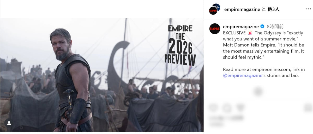 監督の最新作『オデュッセイア』は、2026年の夏を代表するエンターテインメント超大作となりそうだ。主演のマット・デイモンが作品への手ごたえを語った。