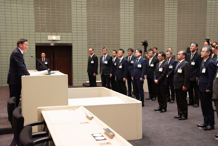 先月の選挙で初当選した上越市の小菅淳一市長(73)が2025年11月10日、市役所に初登庁した。庁議に出席した後、議場に職員を集めて訓示し、記者会見に臨んだ。小菅市長は「市民の多様な声に耳を傾け、真摯に向き合う」などと決意を述べた。