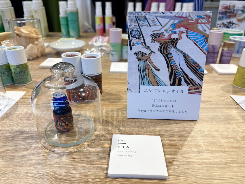少し珍しい「エジプシャンオイル」も気になって聞いてみると、娘さんのご主人がエジプトの方で、現地で特別にブレンドされたオイルを扱っているとのこと。