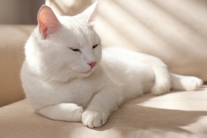 白猫は紫外線の刺激を受けやすく、皮膚炎が起こりやすいという特徴を持っています。白猫と暮らす際は、遮光カーテンやUVフィルムを活用することをおすすめします。