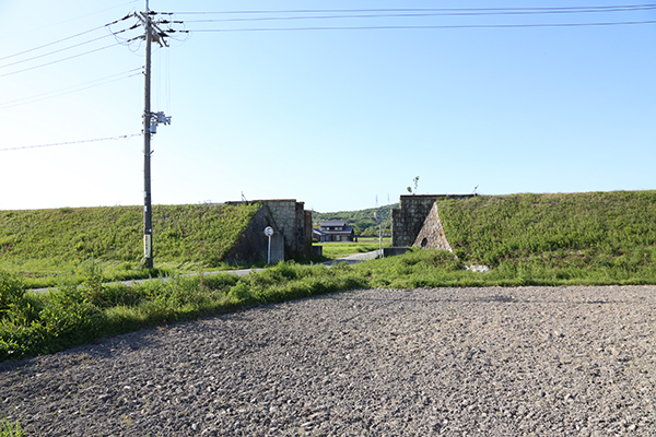 廃線跡にそって歩いていくと途中田んぼの中に築堤が残っており、ガーター橋の橋台が残った箇所を見ることもでき、この廃線跡の注目すべき点の一つでしょう。橋台も石造りとなっており、開業当時を思わせます。
