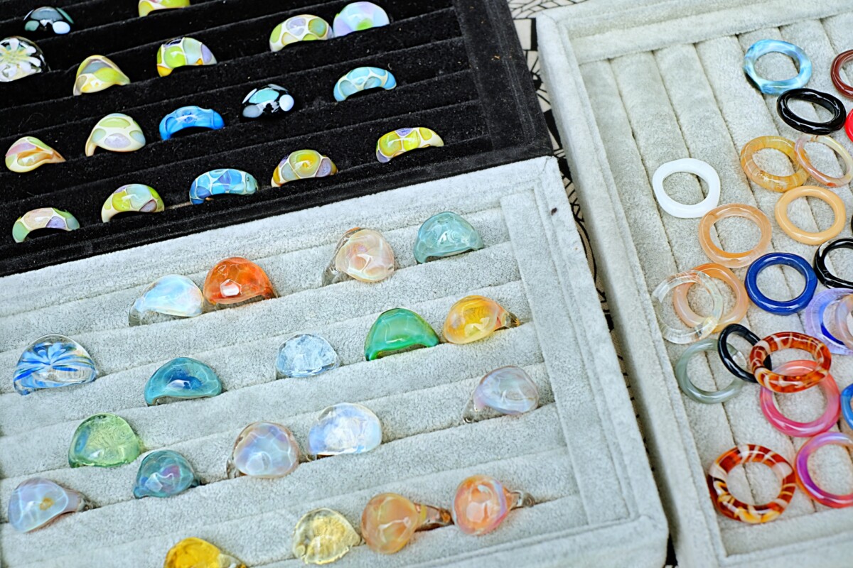 インポートアクセサリー、雑貨、ハンドメイドアクセサリーを扱う「ウサギプゥエル&megu」、まっすぐしか縫えないミシン男子が帆布のかばんや小物を作って販売する「size」、ポーランド製のマグカップを販売「ポーリッシュポタリー小倉」など多種多様なお店が並びます。