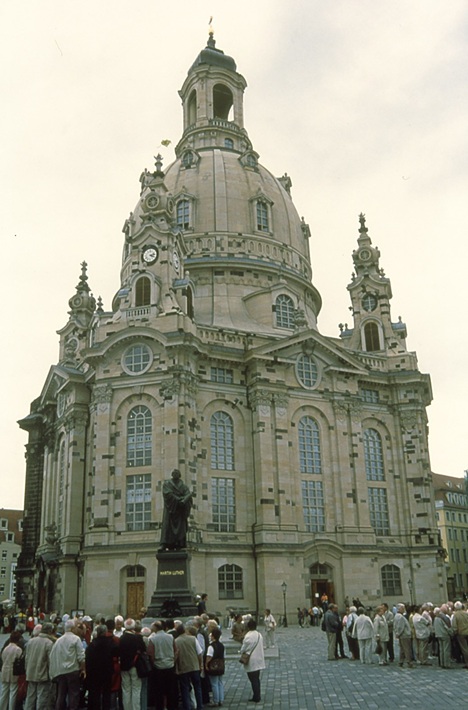 しかし、市の中心部にあって、ドイツ有数の規模のプロテスタント教会だったフラウエン教会の再建に着手したのは、東西ドイツ統一後の1994年5月になってからのこと。
