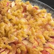 3: りんごの切り込みにシナモンバターを塗り、スキレットに並べます。