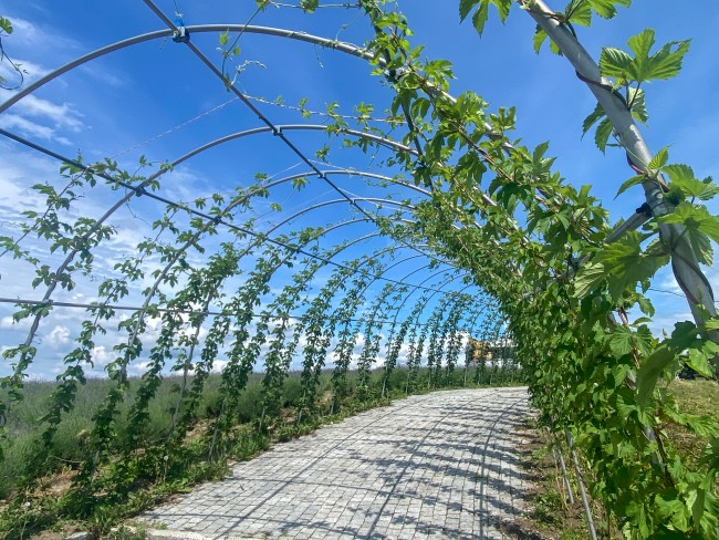 さらに、上富良野町は道内唯一のホップの生産地。ホップのトンネルをくぐることもできますよ。