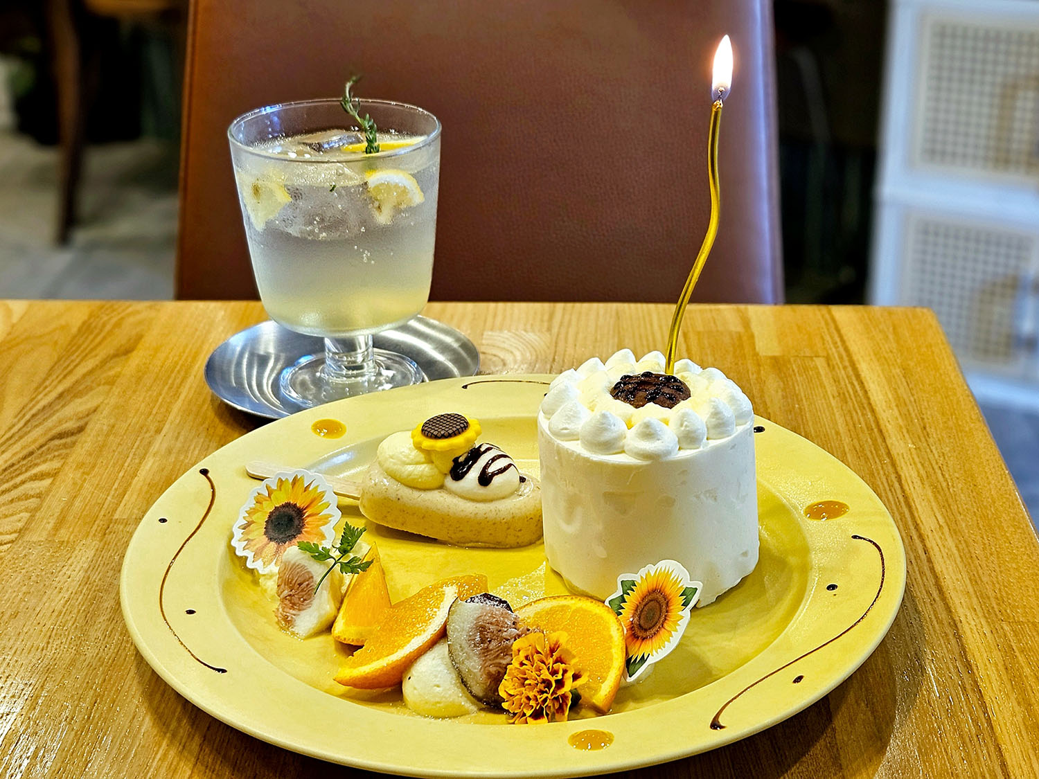 特に誕生日など関係なくローソクが付くプレートですが、事前に予約すれば無料でメッセージも書いてくれるので、バースデープレートとしてもおすすめ。