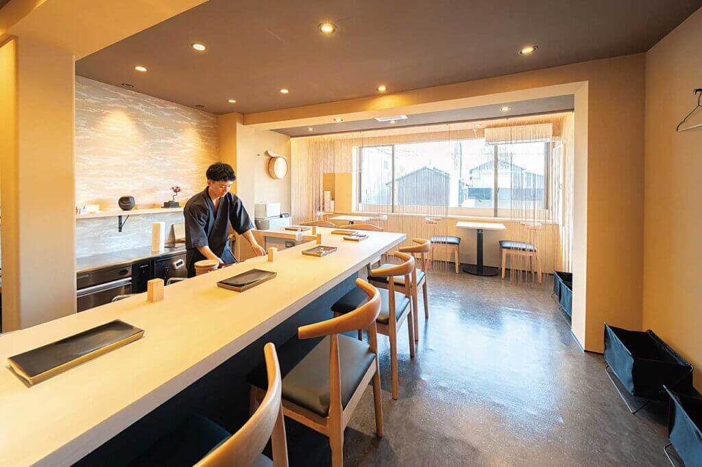 店内にはカウンターとテーブル席を用意しています。予約はInstagramからも可能。