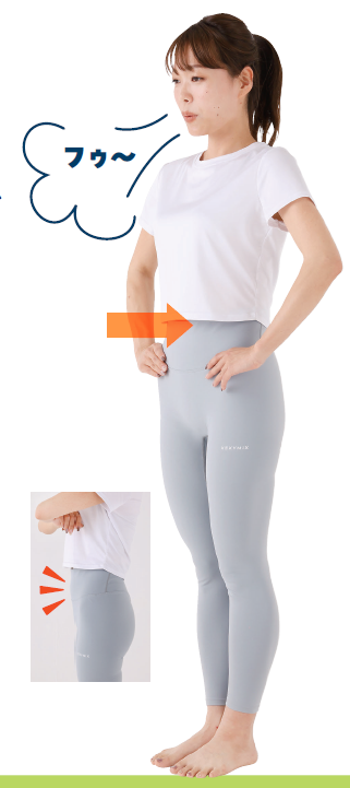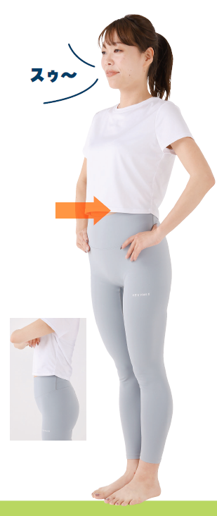 まずは、鼻から大きく息を吸い、おなかを限界までへこませます。