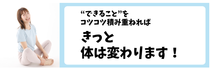 ほんのちょっとでも、体って変わる!「ゆるやせ習慣だけで、ええわ~」って思えばそれでOKだし、モチベが上がって「もっとやせたい!」って思えたら、そのときに食事を見直したり、運動すればいい。
