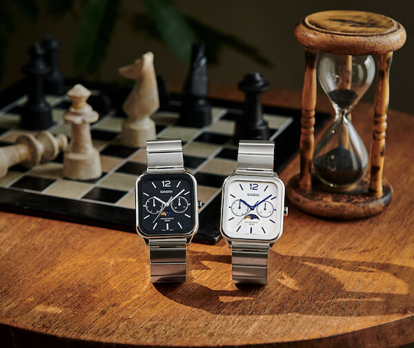 カシオ計算機は、月の満ち欠けを文字盤上で確認できる「ムーンフェイズ」機能を搭載した新作アナログウオッチ「MTP-M305D」「MTP-M305L」を発売した。全5タイプで、価格は17,600円。クラシカルなスクエアフェイスとモダンなデザインを融合させた、上品かつ実用的なモデルに仕上がっている。