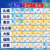 25日(土)からの週間天気予報