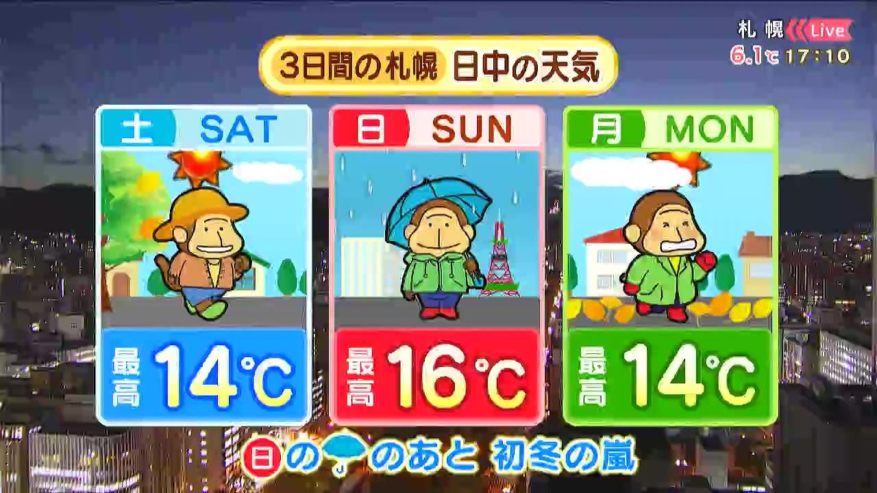 3日間の札幌です! 土日月の天気をもんすけでお伝えします!