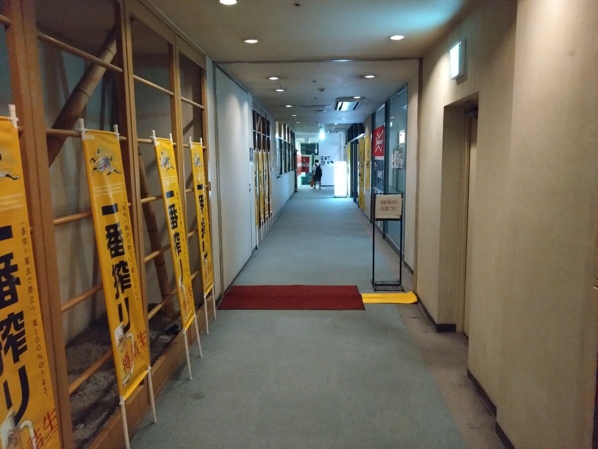 角を曲がると長~い廊下が。「一番搾り」ののぼり。ザ・昭和のサウナ感、グッときます。