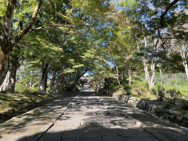JR山科駅から山手に北上した場所にあり、春は桜、秋は紅葉の名所として知られる天台宗寺院『毘沙門堂門跡』。JR東海『そうだ京都、行こう。』CMに登場して以来、紅葉シーズンには全国からも多くの観光客が集う人気スポット。特に、石段周りのカエデの紅葉風景が名物で、タイミングが良ければ紅葉のレッドカーペット状に。現状では、少し色づきが始まった程度で本格ピークはまだまだ先。11月23日(日)にはもみじ祭りも開催予定で、その時期にはさらに紅葉も進行していることでしょう。