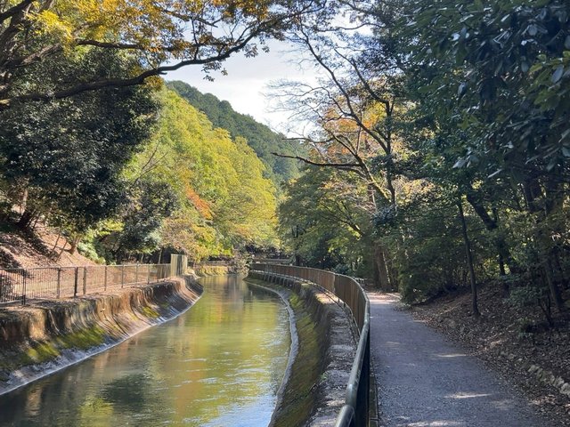 JR山科駅から毘沙門堂へ続く参道を横切るように流れる『山科疏水』。明治時代、琵琶湖の水を京都へ引き込もうとつくられた琵琶湖疏水。2025年5月、近代土木構造物としては初の国宝指定となり注目を集めるスポット。その中でも四ノ宮から日ノ岡までの約4㎞の山科疏水の両岸は、東山自然緑地として整備された遊歩道があり、春は桜、秋は紅葉で彩られる市民憩いの場。現時点では桜の黄葉、うっすらグラデーションが始まったカエデも。
