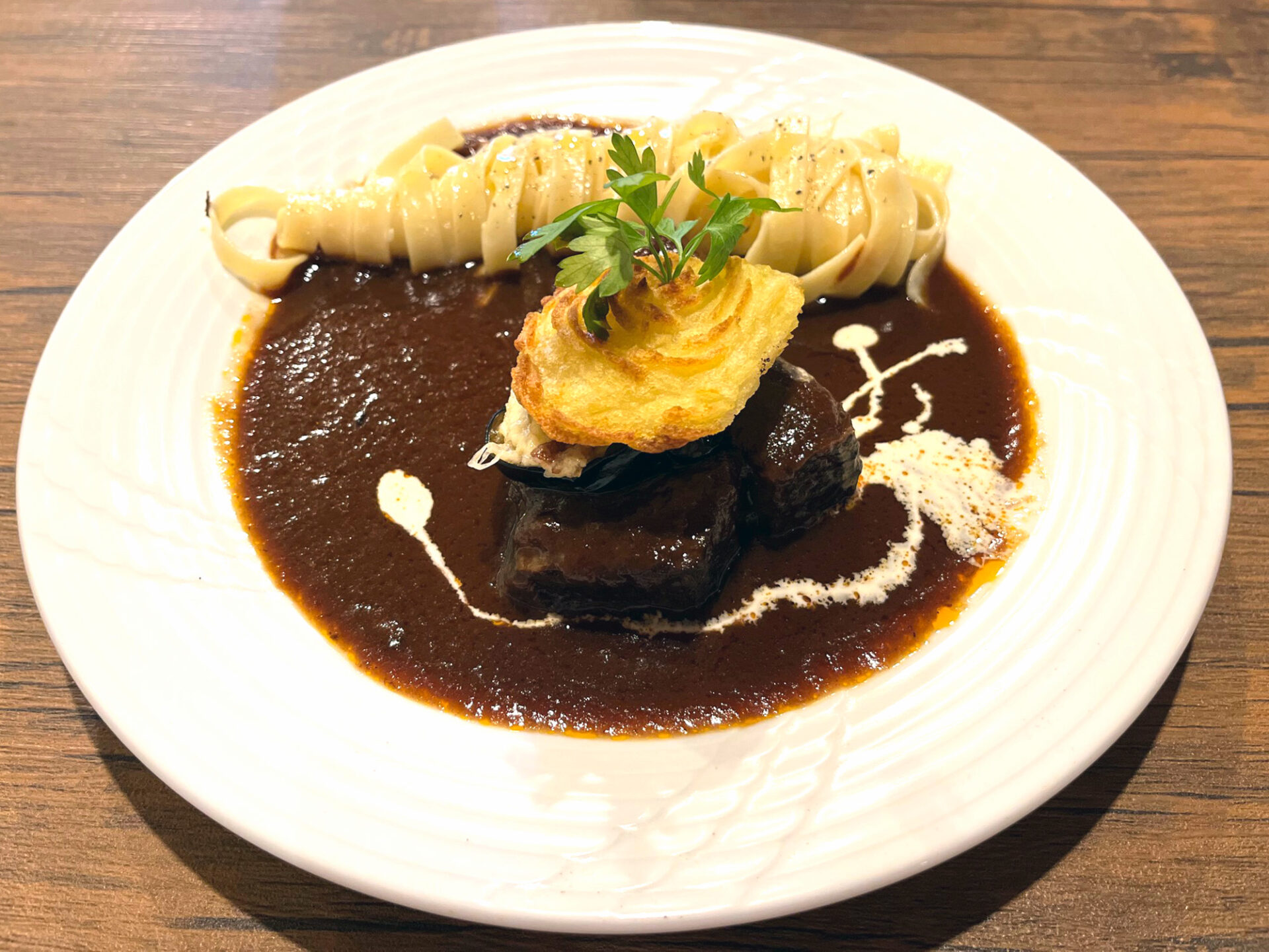 プレオープンのこの日のメニューは、「黒毛和牛のペポーゾ赤ワイン煮込み」。