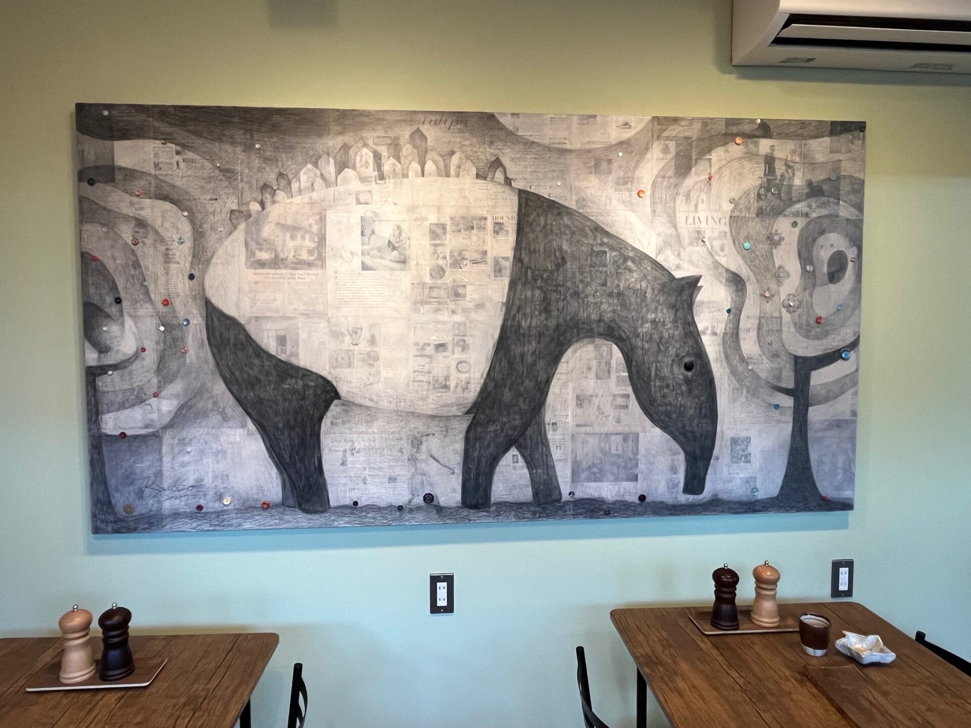 このバクの絵は、倉敷にギャラリーを構える美術家「川埜龍三(かわの りゅうぞう)さん」の作品です。