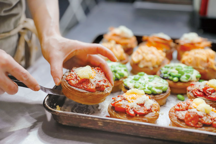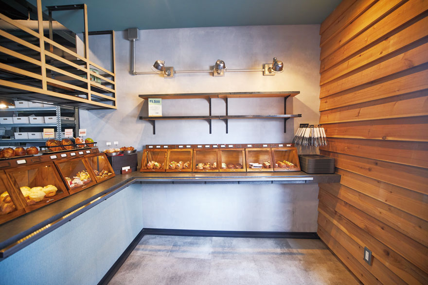 売り場奥にはパン工房があり、カウンター越しにパンが焼き上がる様子を間近で感じられます。