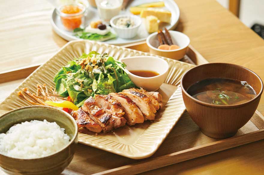 メニューは、土鍋ごはんと豚汁がメインの「朝ごはん」、前菜とメインを置いた「昼ごはん」の2種類のプレートセットからセレクト。スイーツには味噌やしょうゆを使ったメニューもそろい、発酵ならではのおいしさは食べ応えあり!