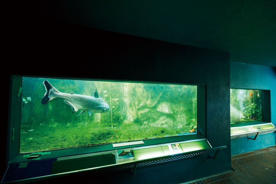 園内の水槽では、設立当初から飼育している「パルーム」をはじめとする熱帯魚が、池では金魚が泳いでいます。