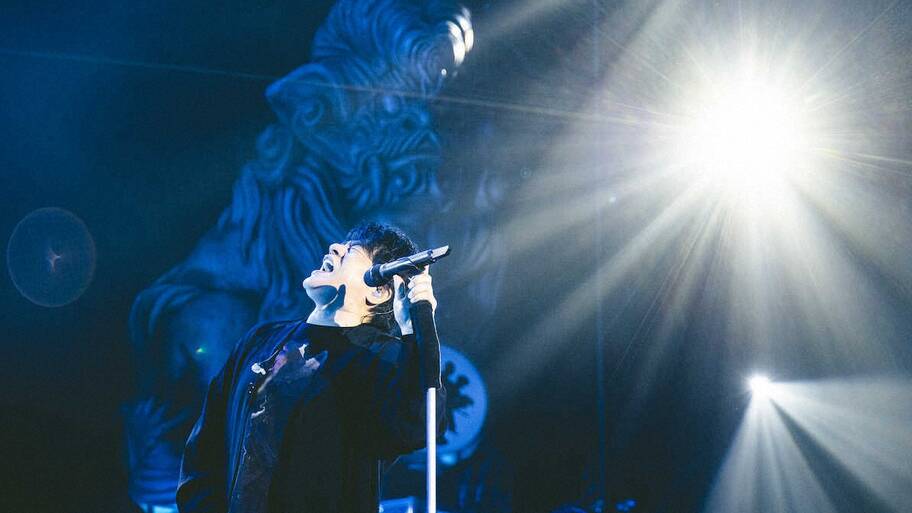 続いてキーボードの美しい音色が静かに鳴り始めると、『「生きろ」』へ。感動的なサウンドの中、「生きろ」という強いメッセージがストレートに心へと届いてくる。メンバーの真剣な眼差しと、それを見つめ返す観客の表情が印象的で、曲が終わると同時に自然と大きな拍手と歓声が巻き起こった。