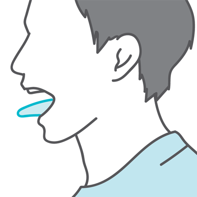 口を大きく開け、舌の先を上の前歯の裏側(歯茎のつけ根あたり)に強く押しつける。舌の根元が上に持ち上がるのを意識しながら、5 ~ 10秒間キープ。これを2 ~3回繰り返す。