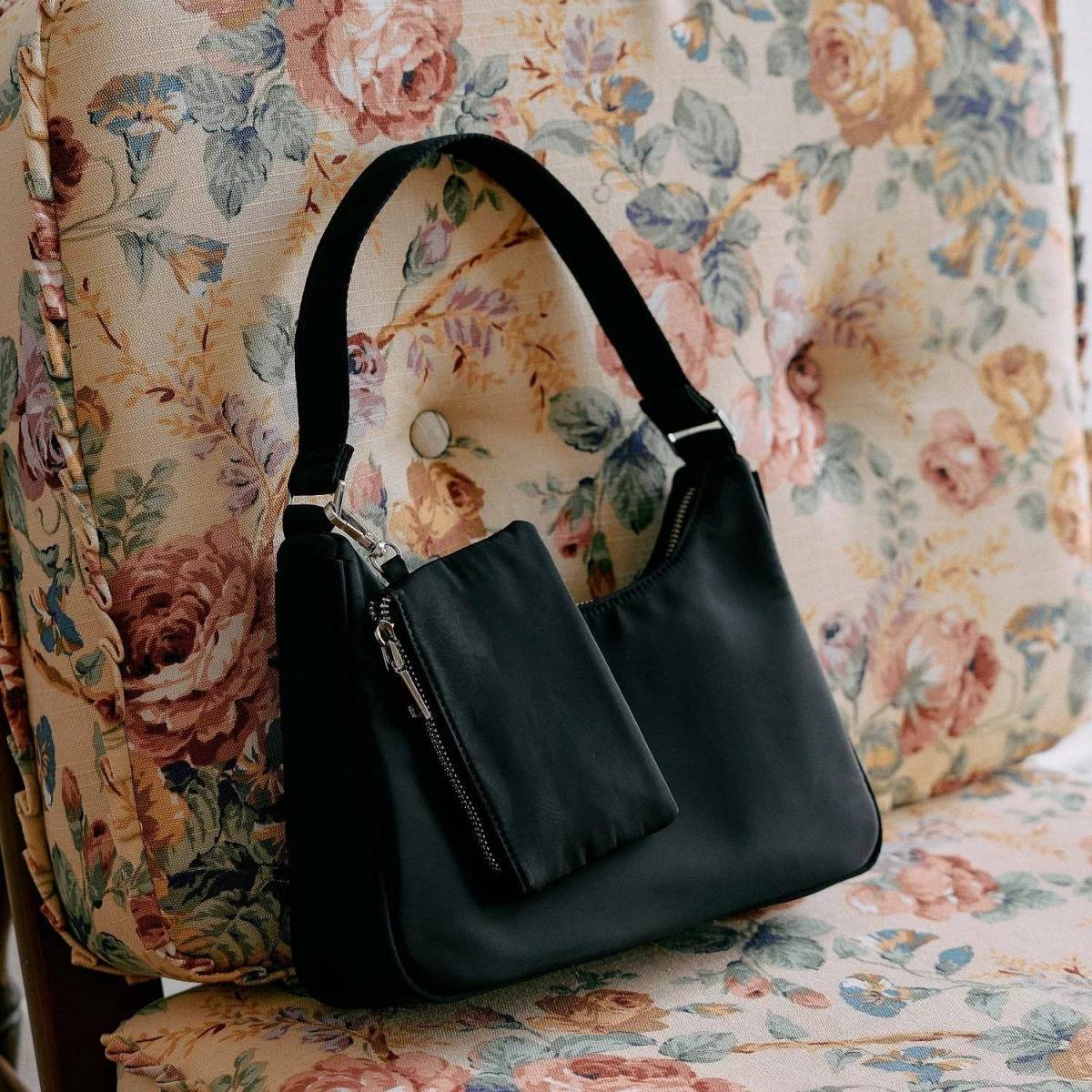 ふっくらとしたフォルムのバッグは、フェミニンな雰囲気が素敵♡