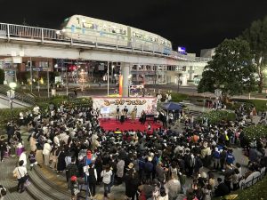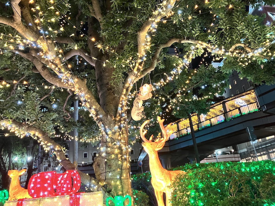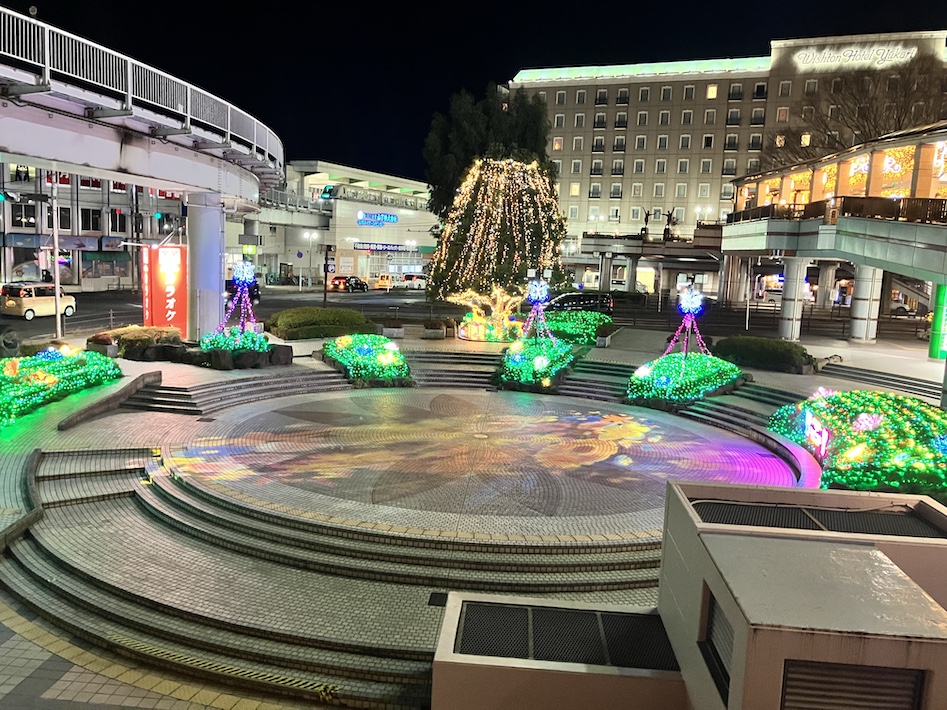 それに続くオーロラを思わせる光と、プロのデュオ「コアラモード.」の歌声で街は幻想的な雰囲気に包まれます。