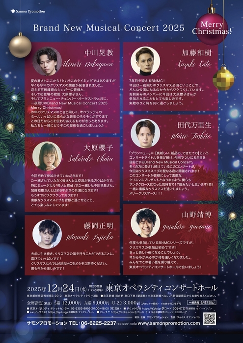 2025年12月24日(水)東京オペラシティ コンサートホールにて、『Brand New Musical Concert 2025 Merry Christmas!』が開催されることが決定した。