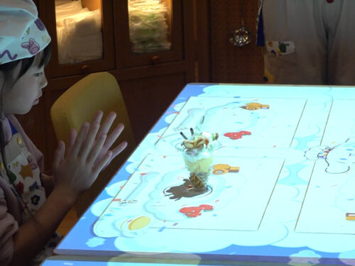 完成後には、テーブルの上にマッピング演出が展開し、まるで魔法がかかったかのようにパフェの周りが幻想的な映像に包まれ、特別な瞬間を演出します。