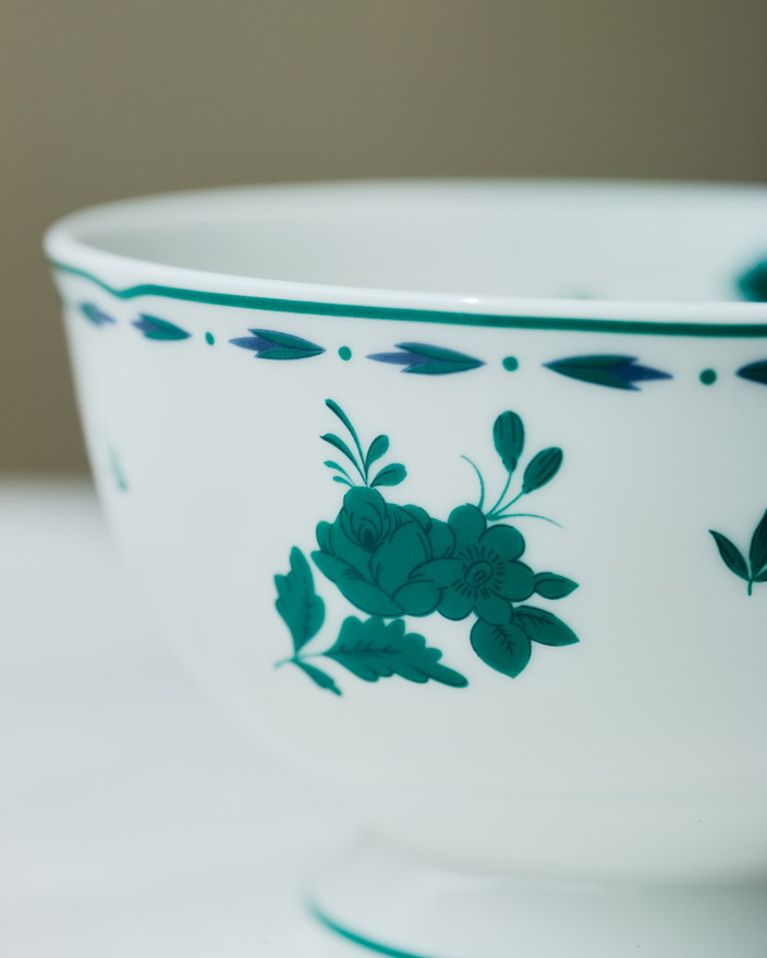また色味も、繊細な絵柄に合わせて複数の色を混ぜ、ヨーロッパのアンティークのような深みのある青味がかったグリーンへと調整しています。