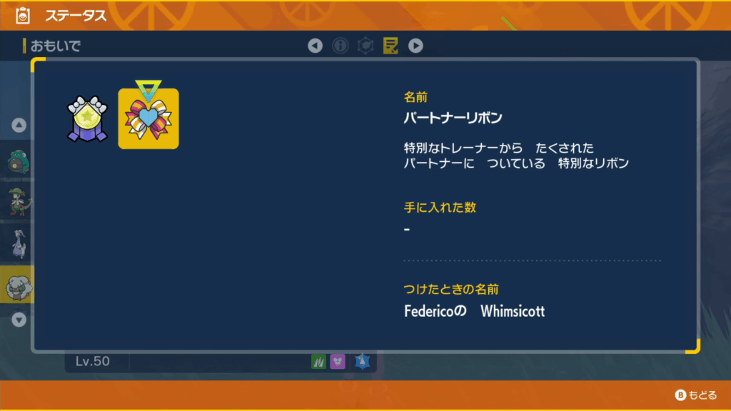 また、特別なリボン「バトルチャンプリボン」「パートナーリボン」の2つがついています。
