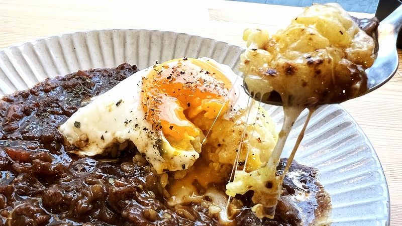 口に運ぶと…チーズや卵でまろやかさがプラスされて、カレーのおいしさを引き立てます!