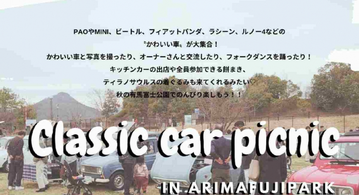 有馬富士公園(三田市)で11月16日、「クラシックカーピクニックin有馬富士公園」が開催されます。入場は無料です。