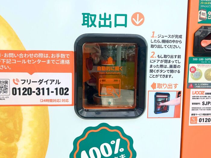 生絞りオレンジジュースの自販機を発見↓