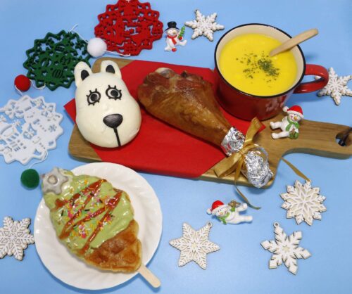 ターキーレッグや温かいスープなど、クリスマスの遊園地にぴったりなワンハンドメニューを多数取り揃えています。
