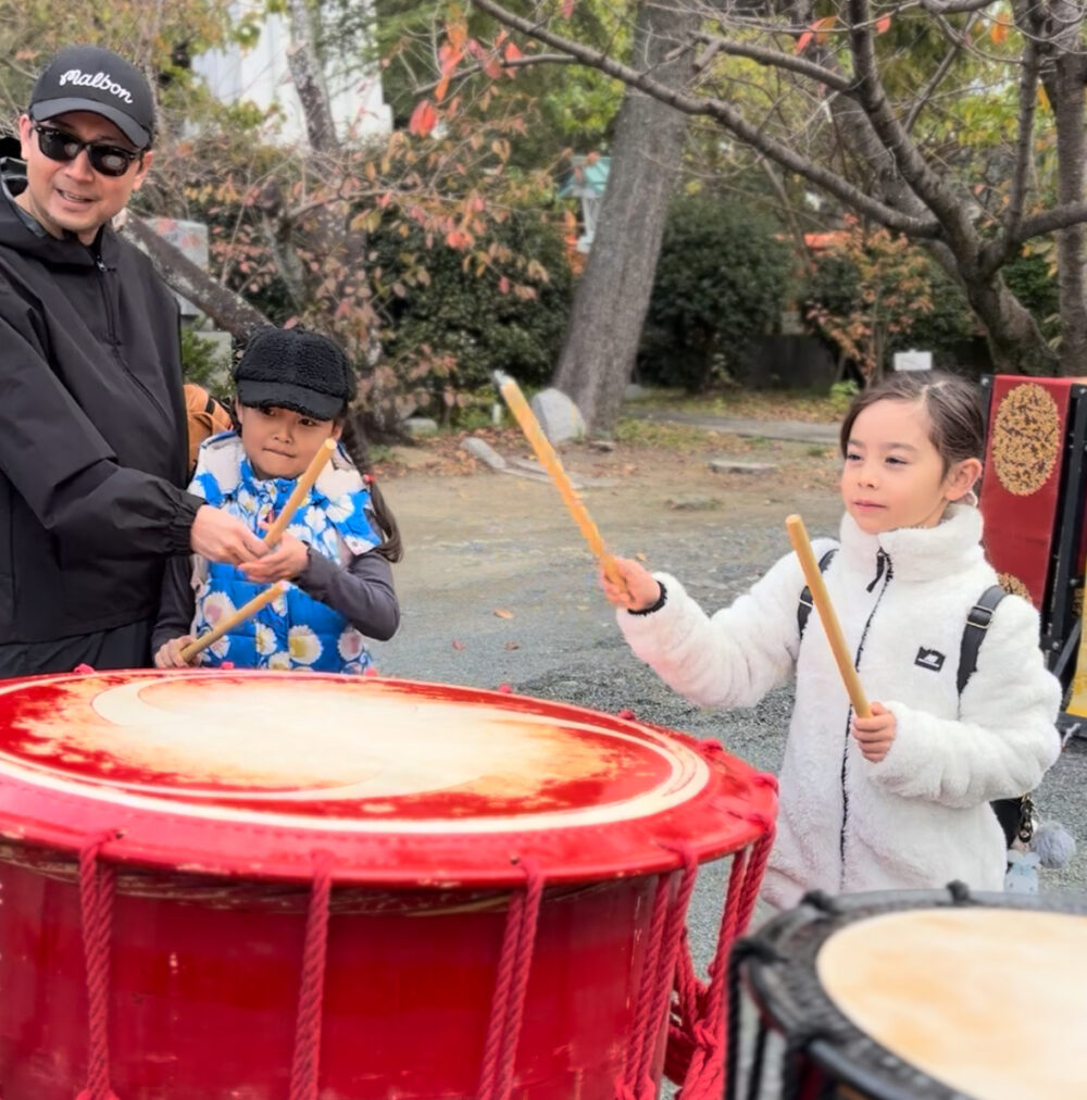 和太鼓の音と同時に開始します。また、来場者が和太鼓に触れられる自