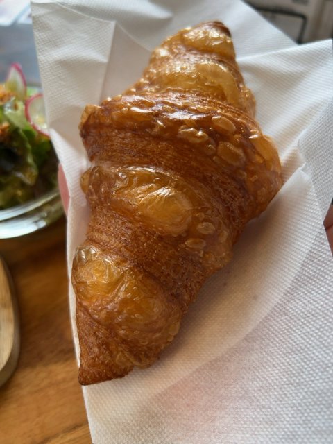 で、この時ご主人から、普段この時間にはないAOPバタークロワッサンを焼いたばかりなのでどうですか?と。以前バタークロワッサンは食べたことがあったので、おすすめのAOPバタークロワッサンとコーヒーをチョイス。