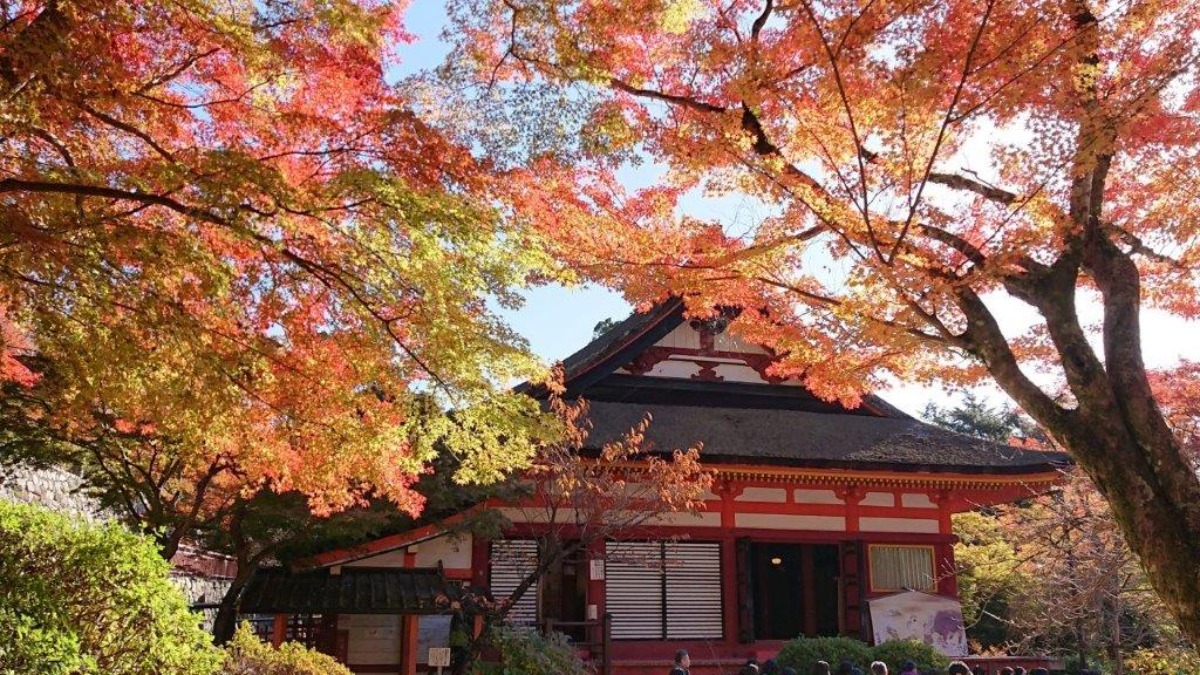 色鮮やかな本殿は日光東照宮を建てる際にモデルとされたそうで、紅葉に彩られた風景は「関西の日光」とも呼ばれている。