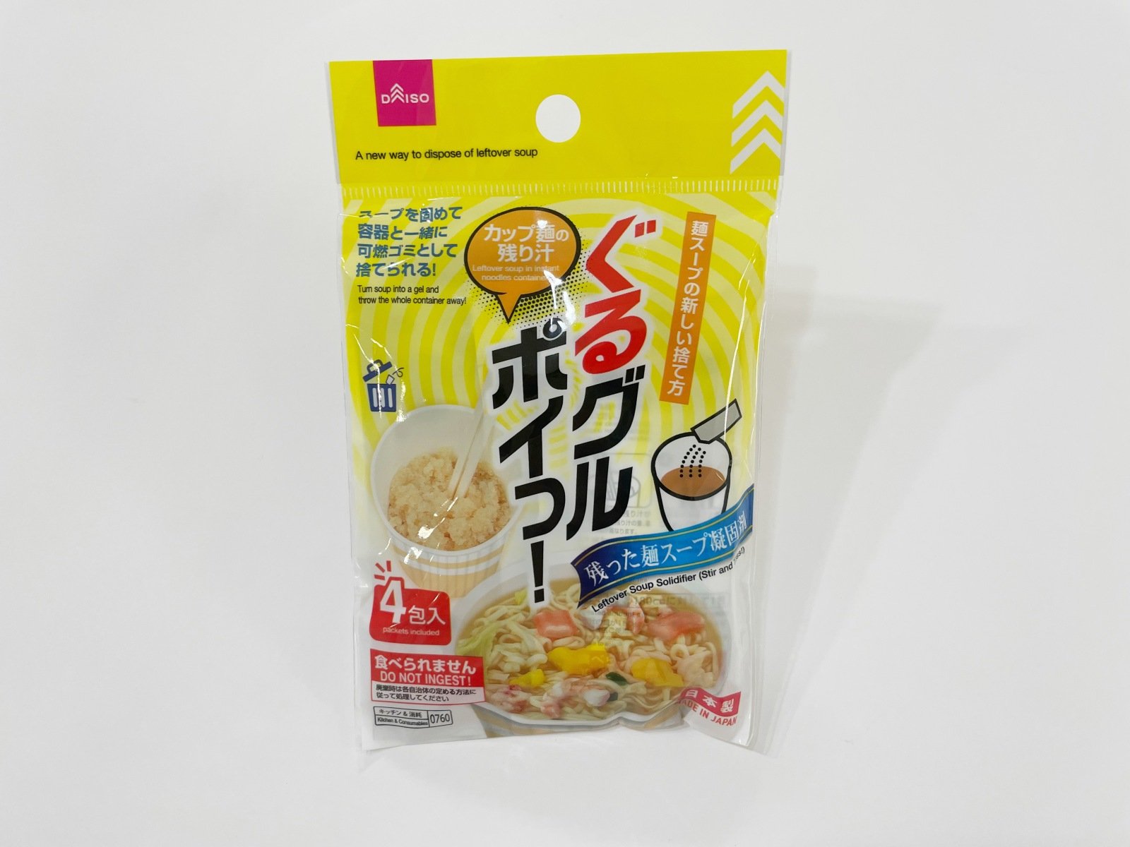 手軽に食べられて、忙しい日にも助かるカップ麺。食べ終わった後に残ってしまうスープ、どう処理していますか? シンクに流すと排水管や環境への影響が心配。かといって飲み干すのは塩分が気になりますよね。そんなときに便利なのが、ダイソーのアイデアグッズ「ぐるグルポイっ!」です。実際に使ってみた様子をレポートします。