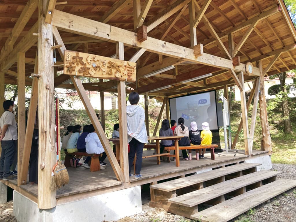 児童や保護者、地域の人たちも参加してつくった「森の教室」。