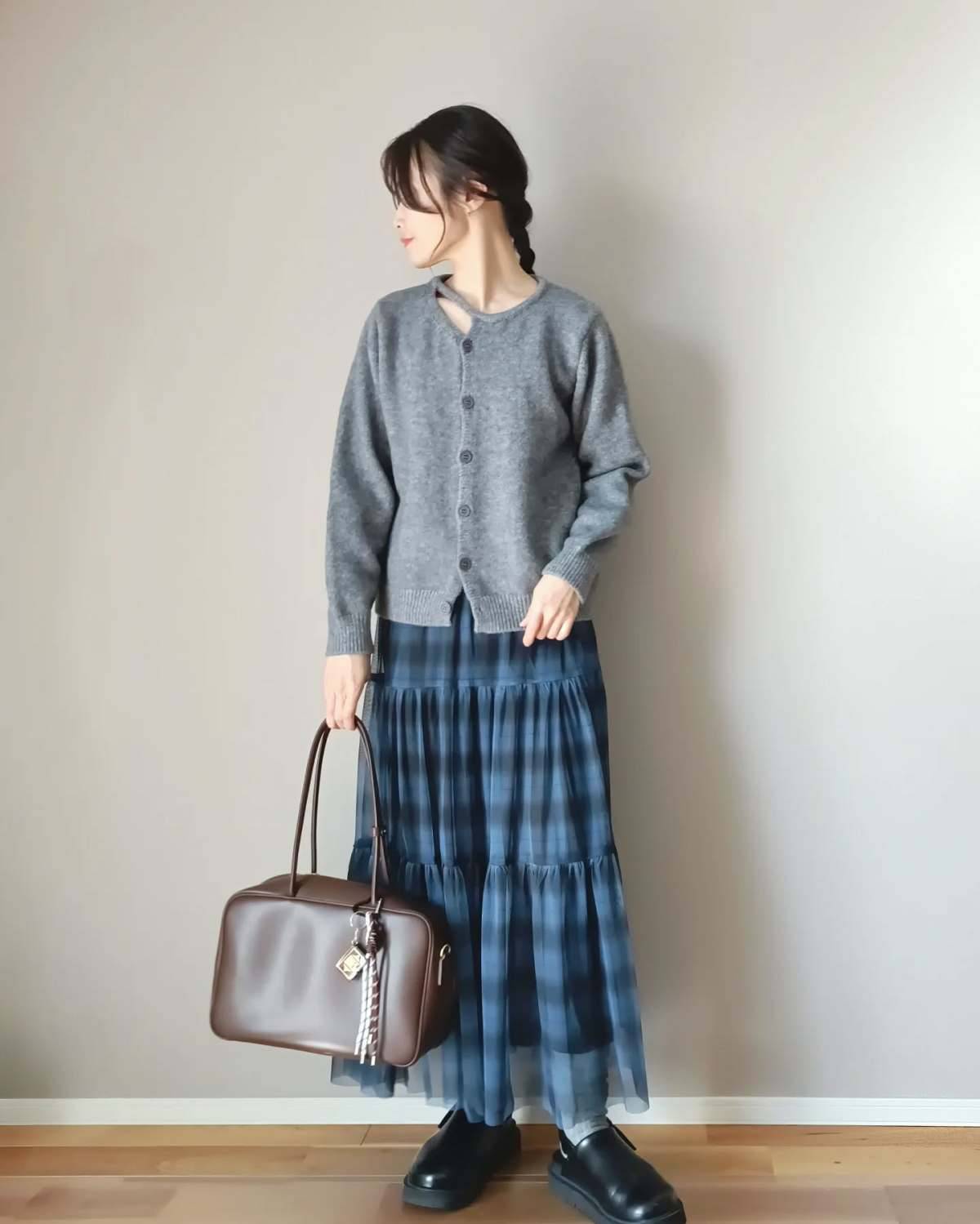 【秋編】大人可愛いカーディガンコーデ①チェック柄スカートを合わせる♪