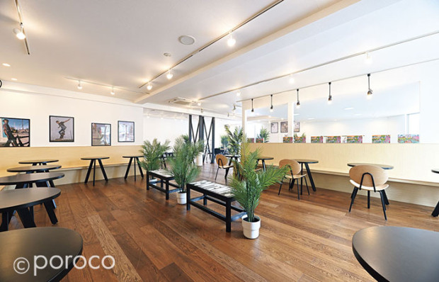 2Fは広いイートインスペースで、テーブル間隔もゆったり。