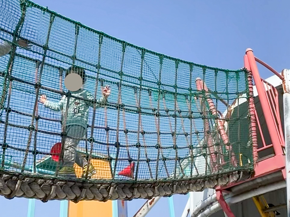 急角度のすべり台や、なだらかなローラーすべり台があったり、ちょっと難易度高めのクライミングの斜面もあります。