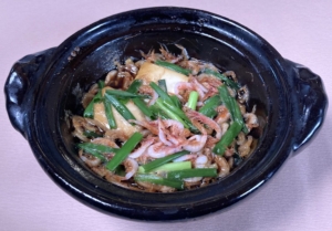 「沖あがり」は、サクラエビ漁で知られる静岡市の由比漁港を中心に古くから親しまれる漁師鍋。サクラエビを豆腐やネギとともに煮込み、醤油と酒で味を整える。エビの香ばしさと甘みが広がる素朴な一品で、漁を終えた船上で食べられてきたことが名前の由来。元々は漁師めしとして親しまれてきたが、近年は家庭料理としても人気が高まっている。