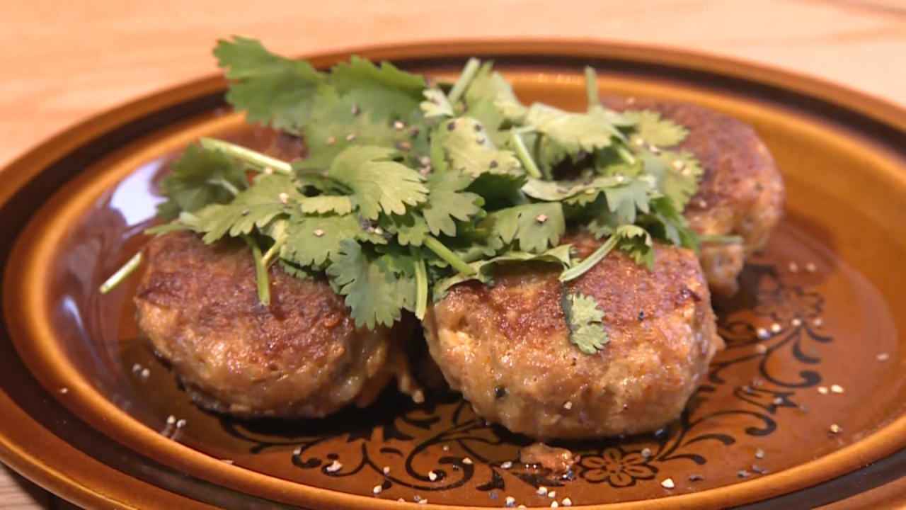 パクチーは上にのっているだけでなく、つくねの中にも葉や根が練りこまれています。
