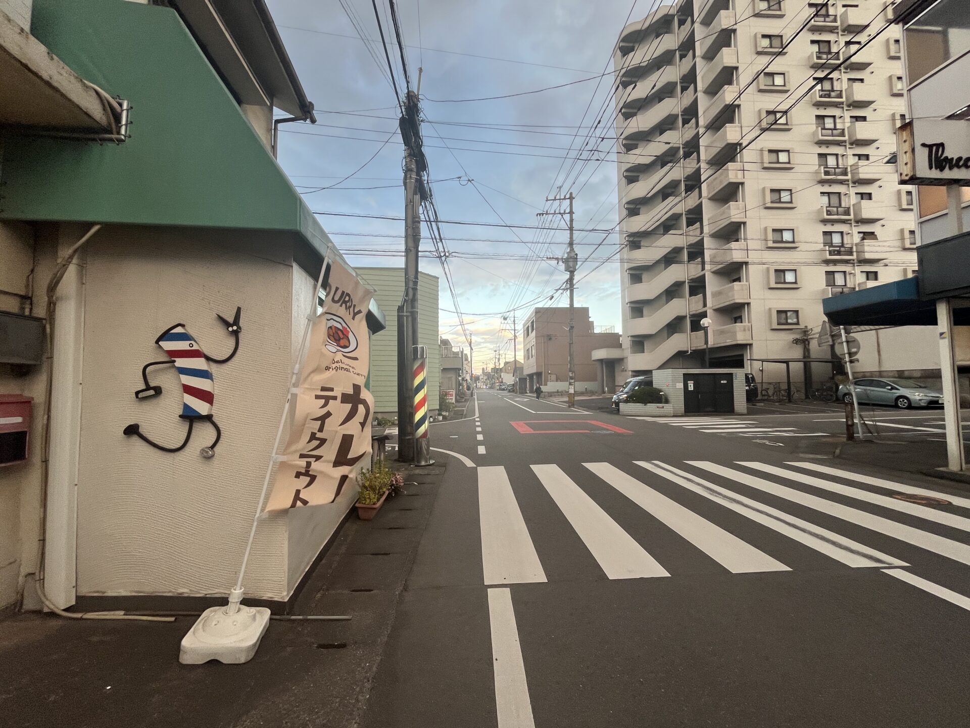高城駅方面↓ カレーののぼりが目印です。