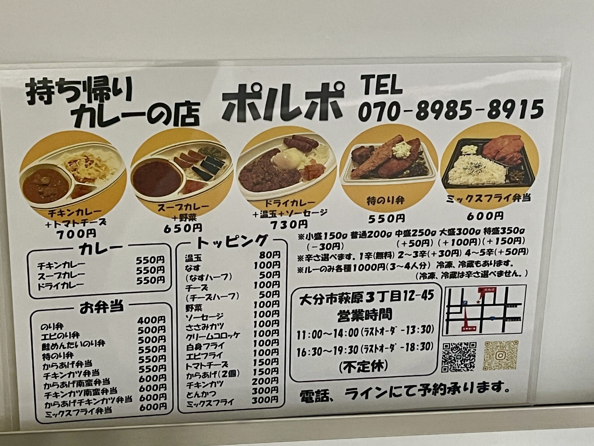 2025年11月10日、大分市萩原にオープンしたテイクアウト専門のカレー屋さん『持ち帰りカレーの店 ポルポ』に行ってきました。