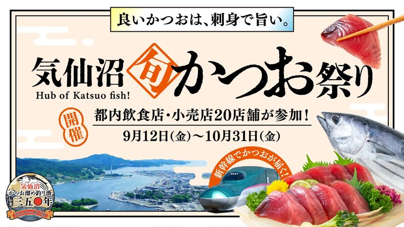 東京都内20店舗で「気仙沼旬かつお祭り」9/12~10/31で開催! 水揚げ日本一の気仙沼の”朝どれかつお”を新幹線で東京へ!