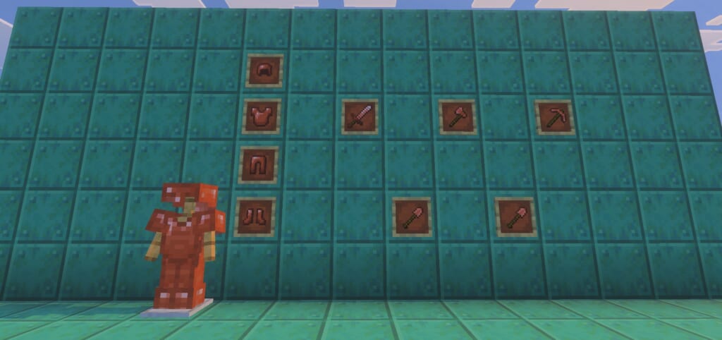 銅のブロックなどと異なり、銅のツールや防具が錆びることはありません。